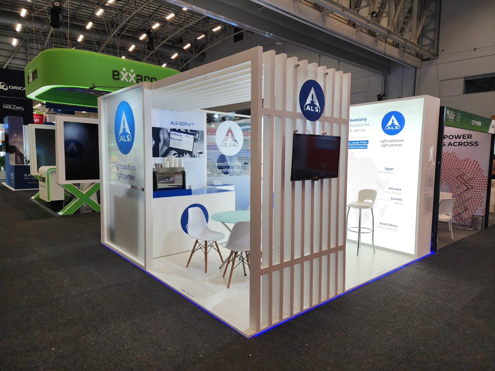 - The project involved a rebuild of existing structures, which required careful planning to upcycle materials while ensuring a refreshed, modern look for the exhibition stand.