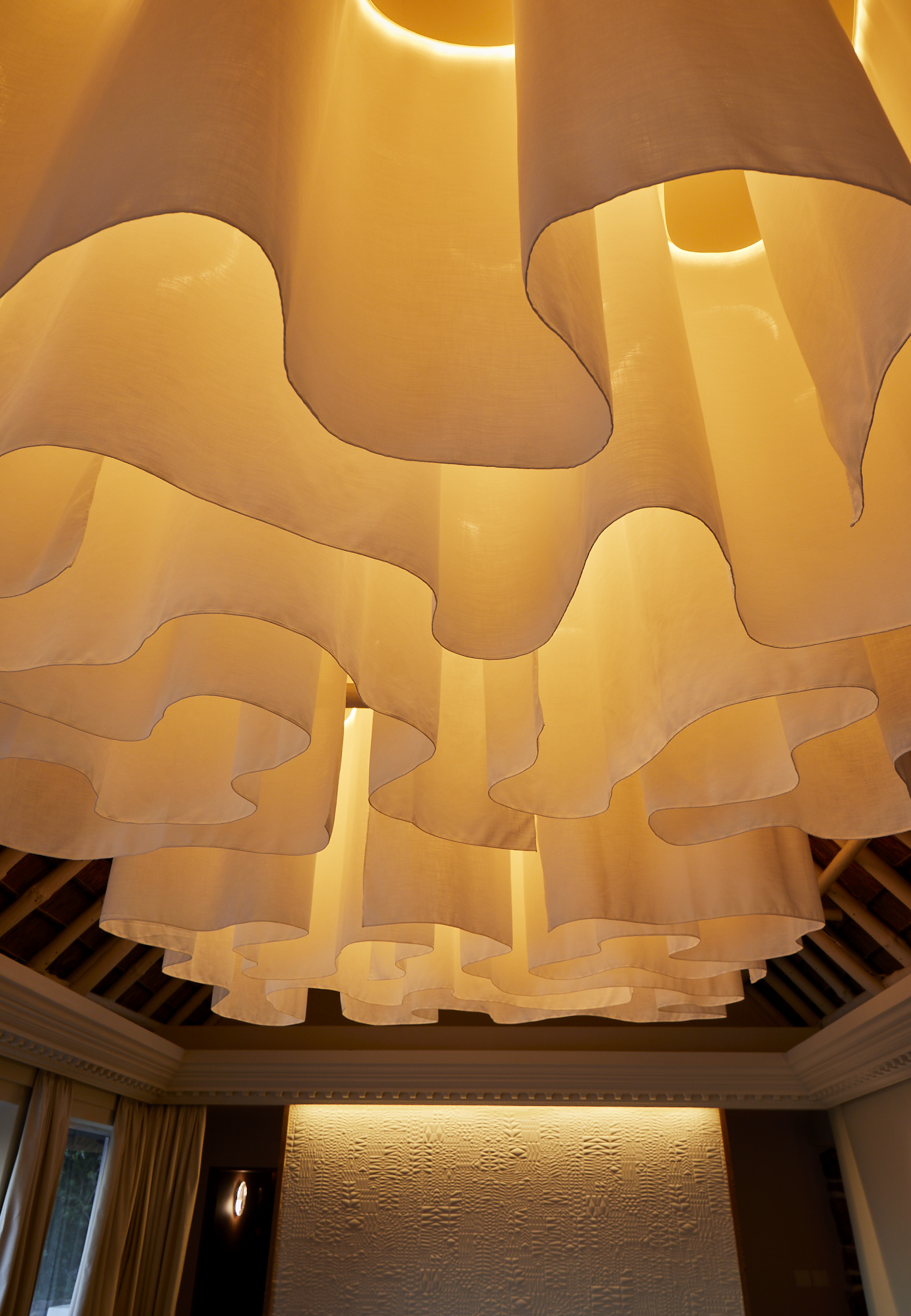 The fabric had to be semitransparent for the architectural lighting to pass through but still keep a perfect look n feel.