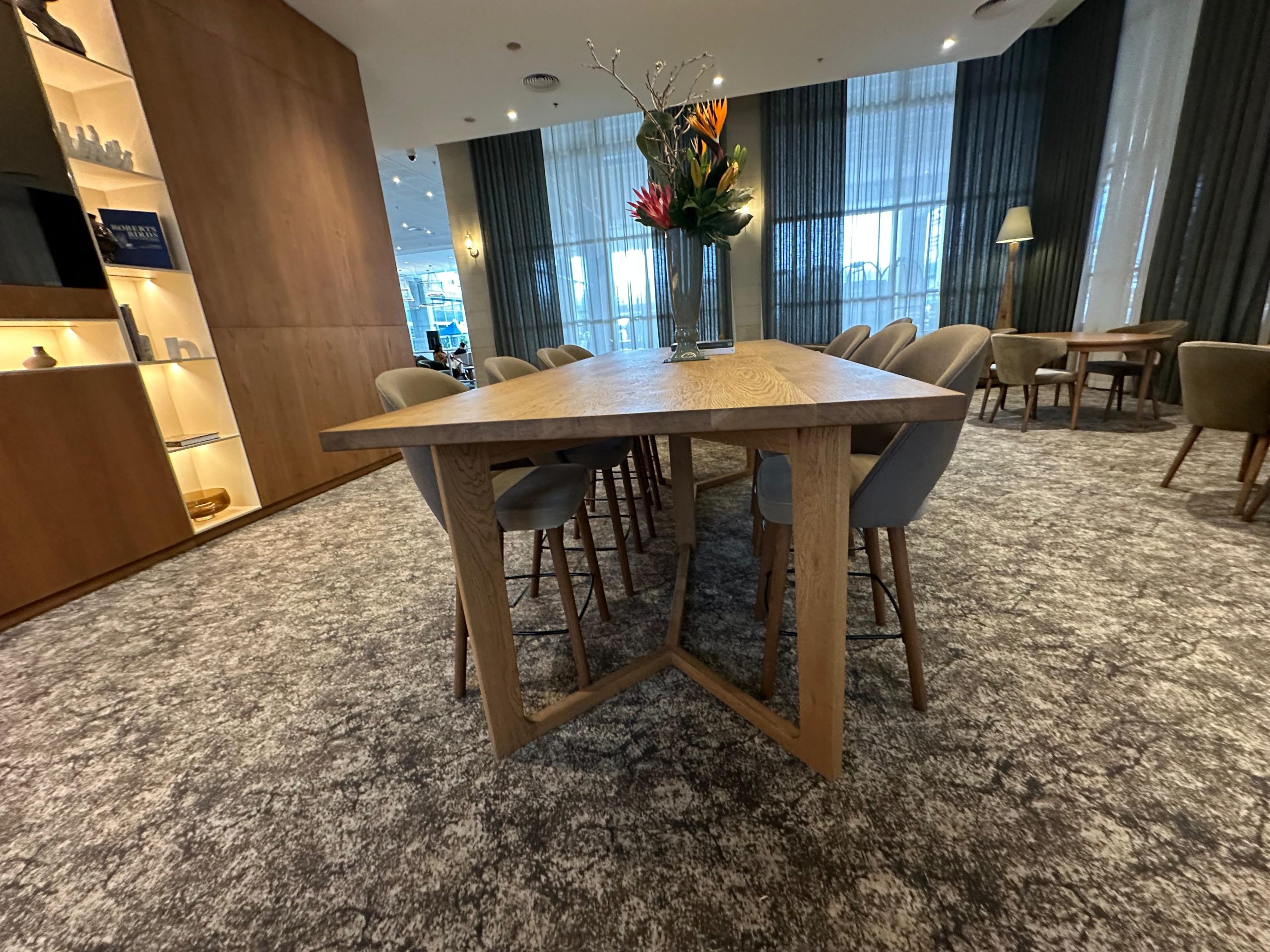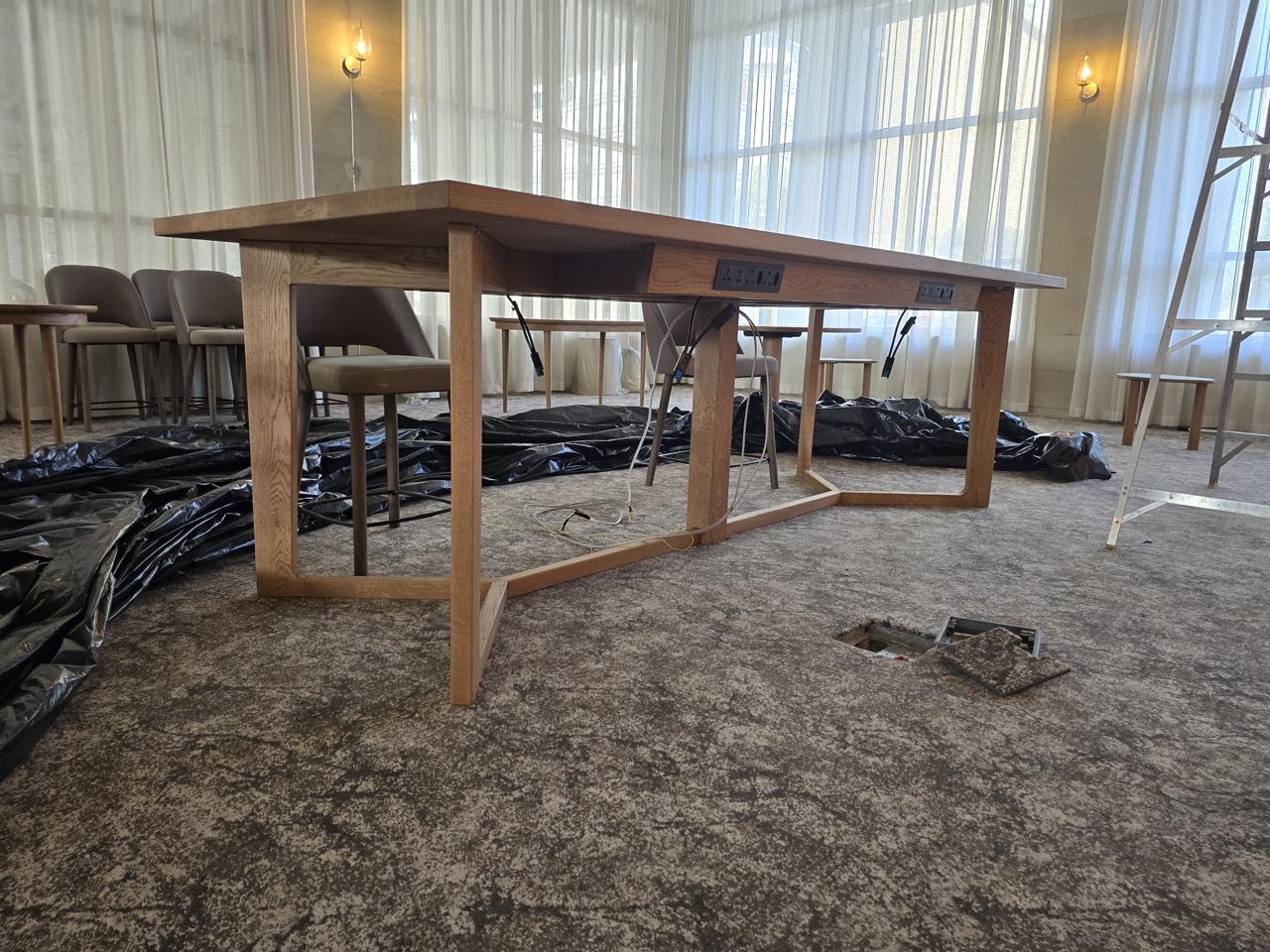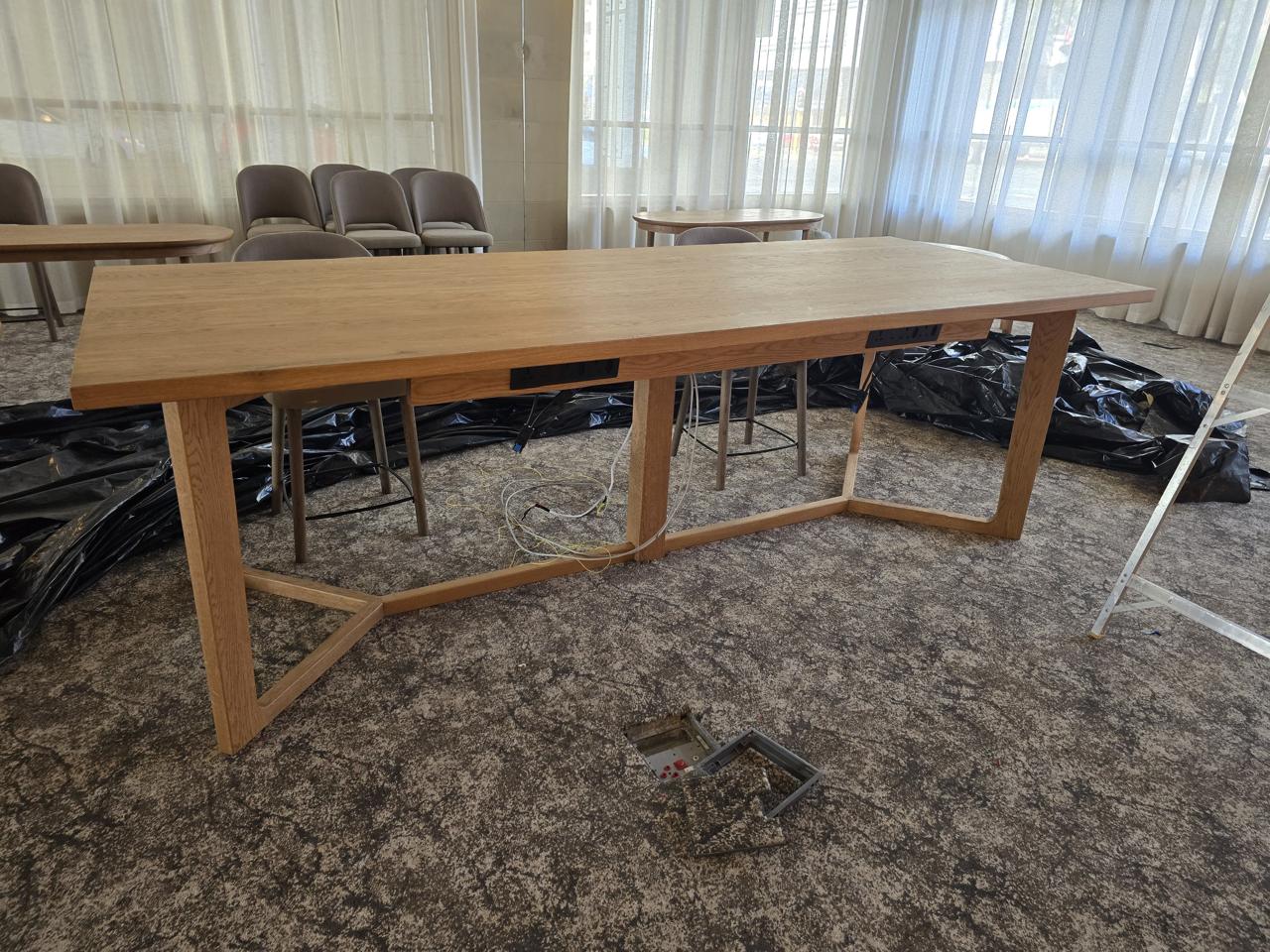 Beautiful tables crafted out of Oak with integrated electrics, glass and stone.